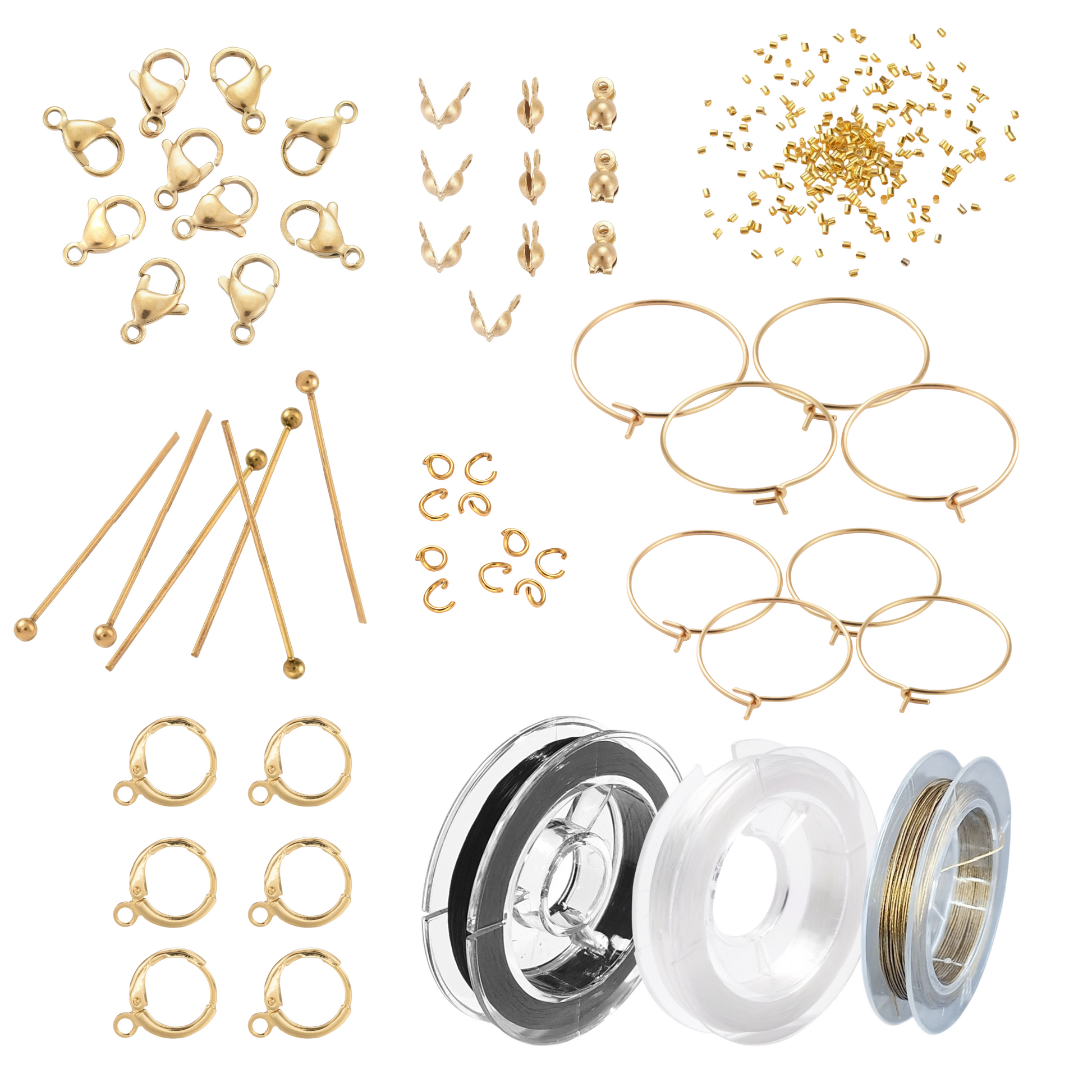 Dette basis startsæt indeholder kvalitets smykkematerialer. 304 rustfrit stål forgyldt med 18k guld.