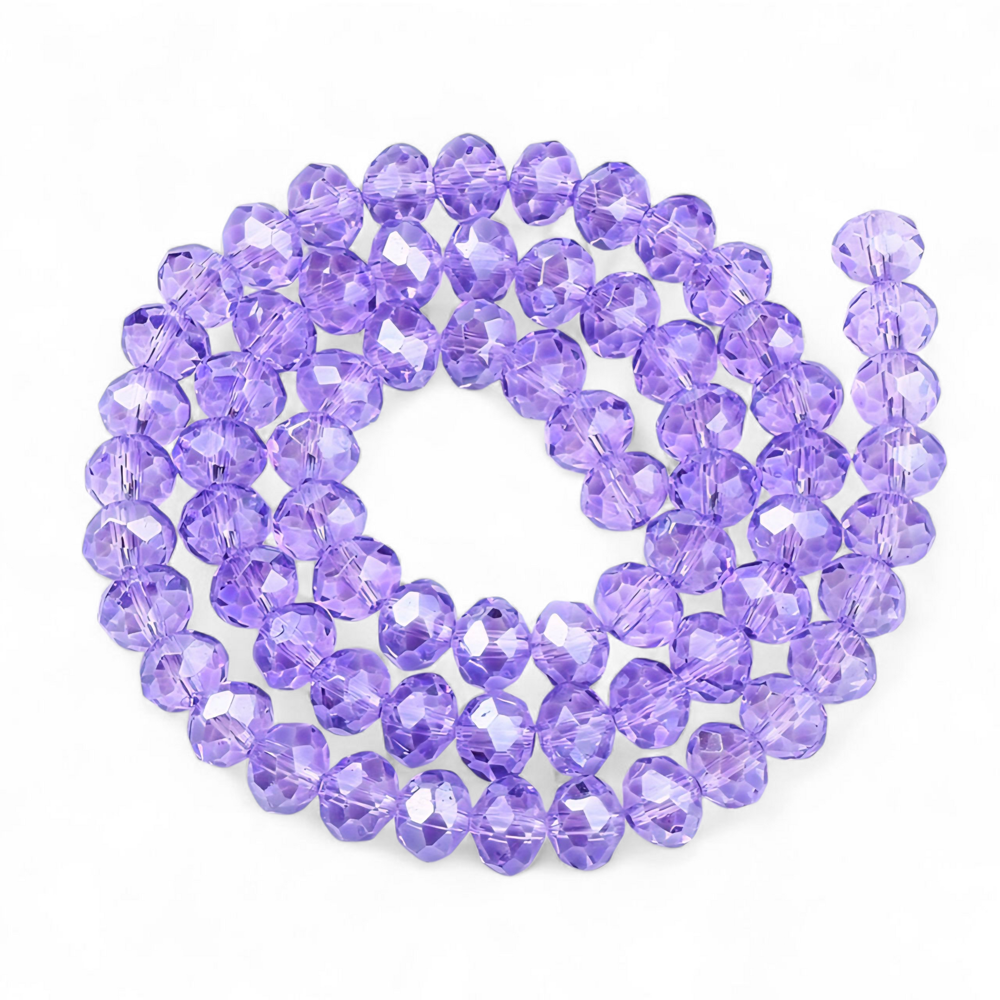 Glasfacetter klar lilla. Rondeller 6x5 mm. Hel streng.