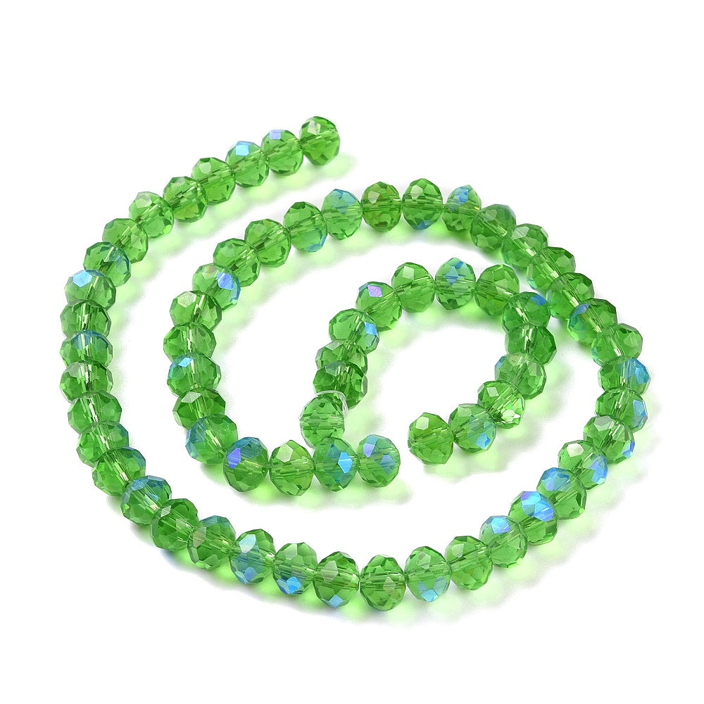 Glasfacetter mellemgrøn rondeller 4x3 mm. Hel streng.