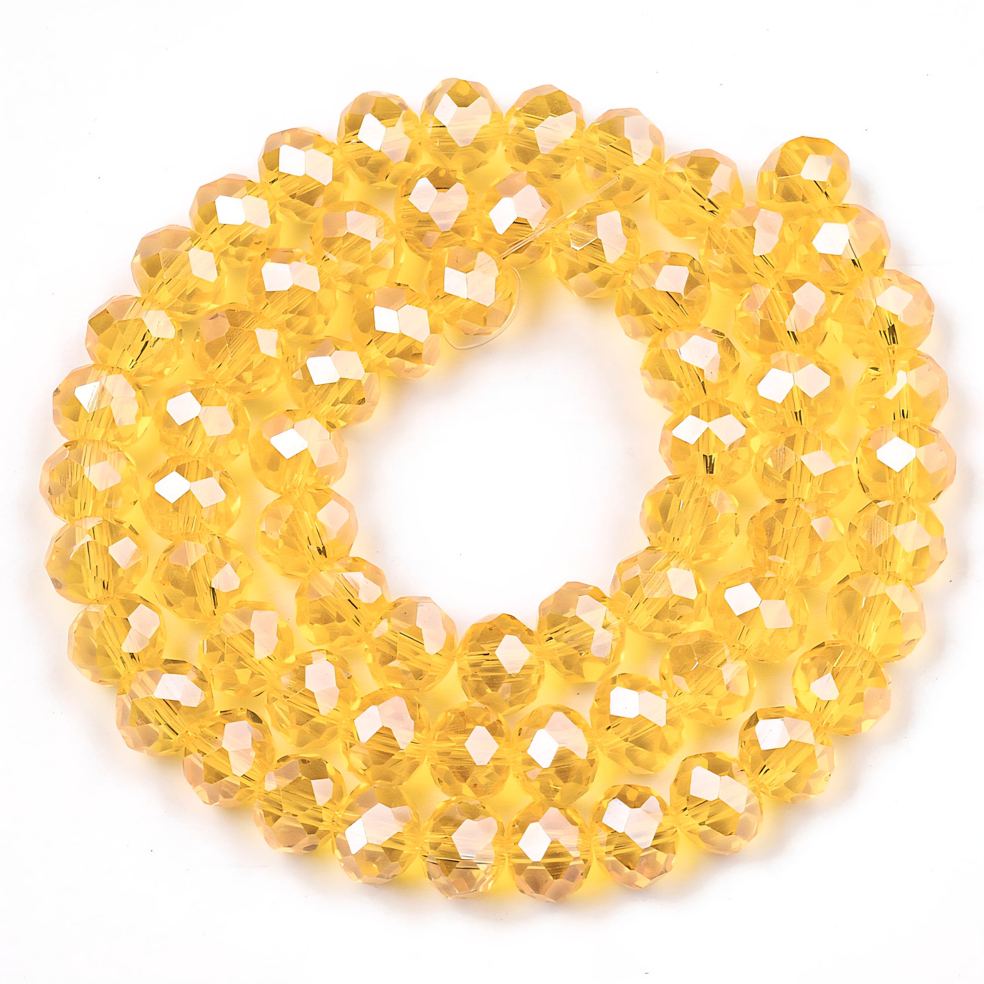 Glasfacetter rondeller 3x2 mm. Solgul. Hel streng.