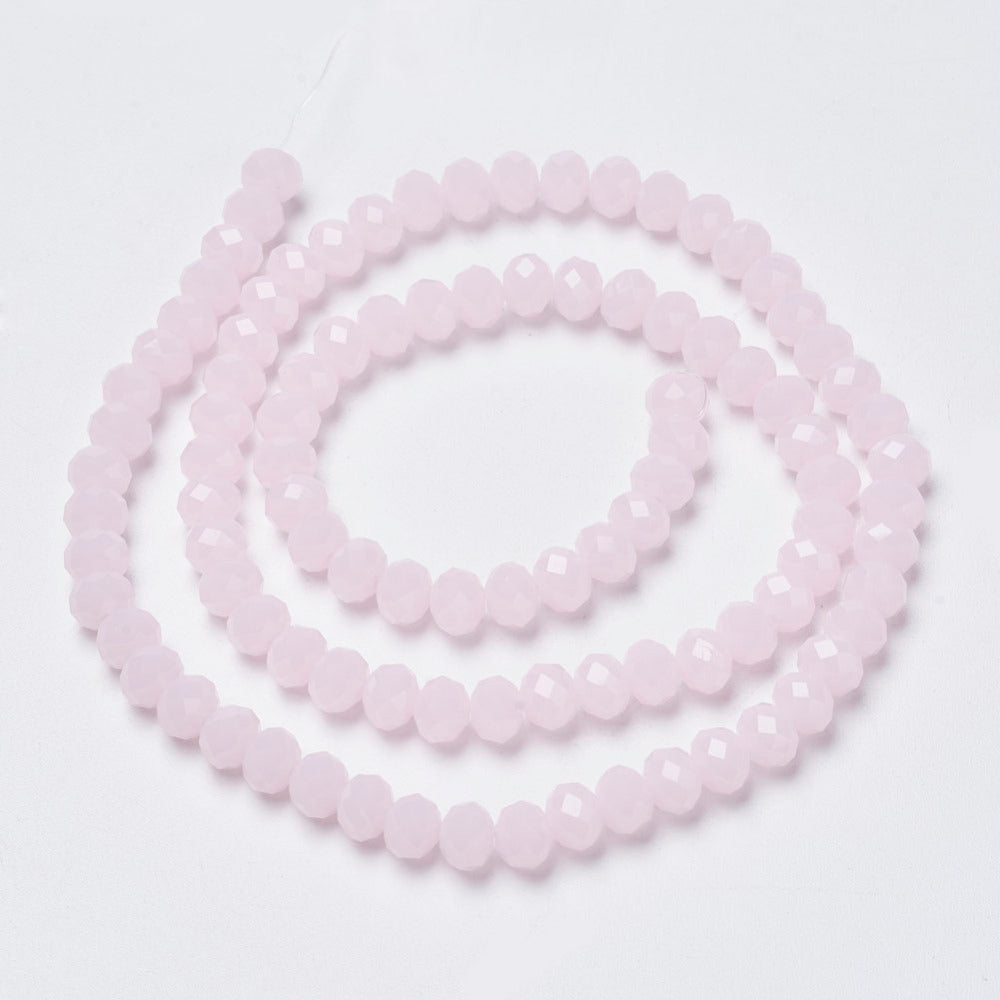 Glasfacetter rosa jadelook rondeller 6 mm. Hel streng.