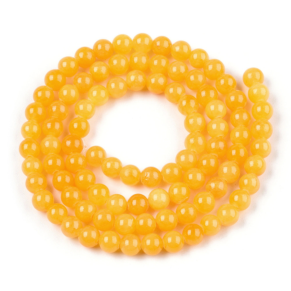 Jadeperler mørkegul. 6 mm. Hel streng.