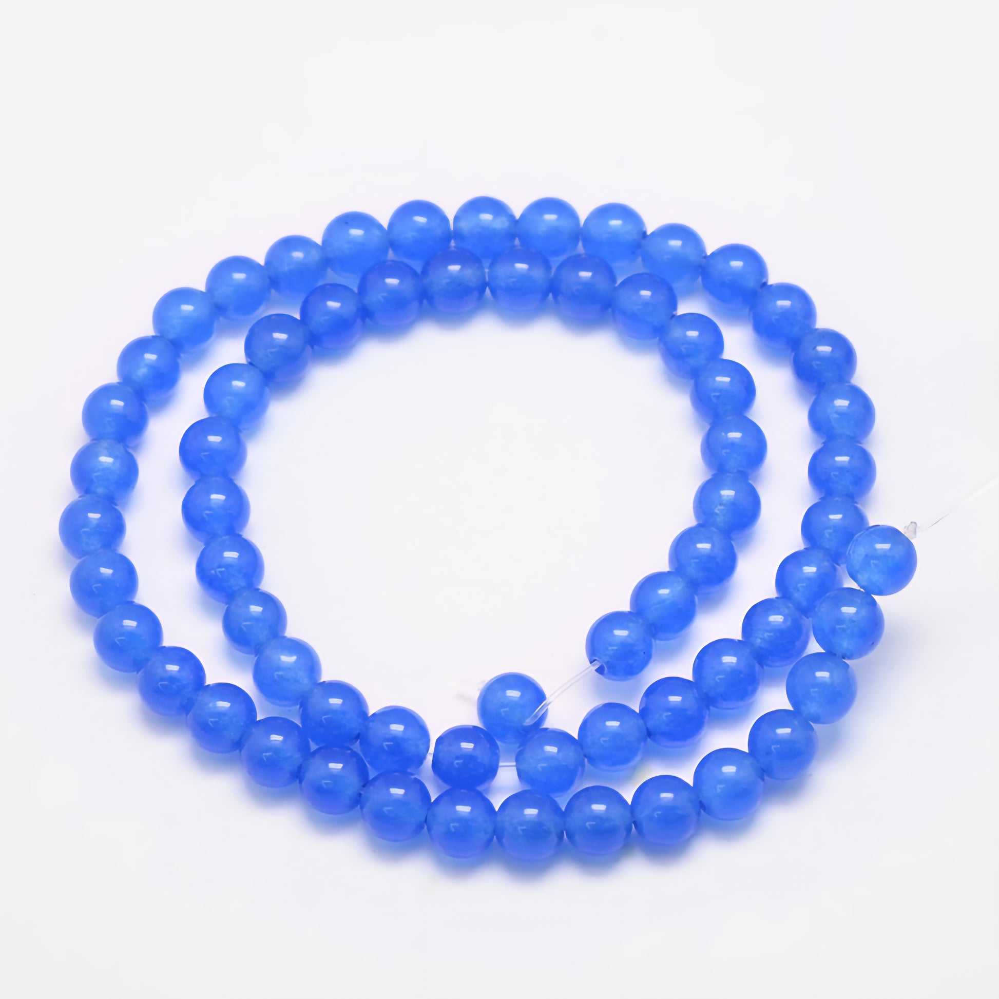 Jadeperler runde. Blå 6mm. Hel streng på 38 cm.