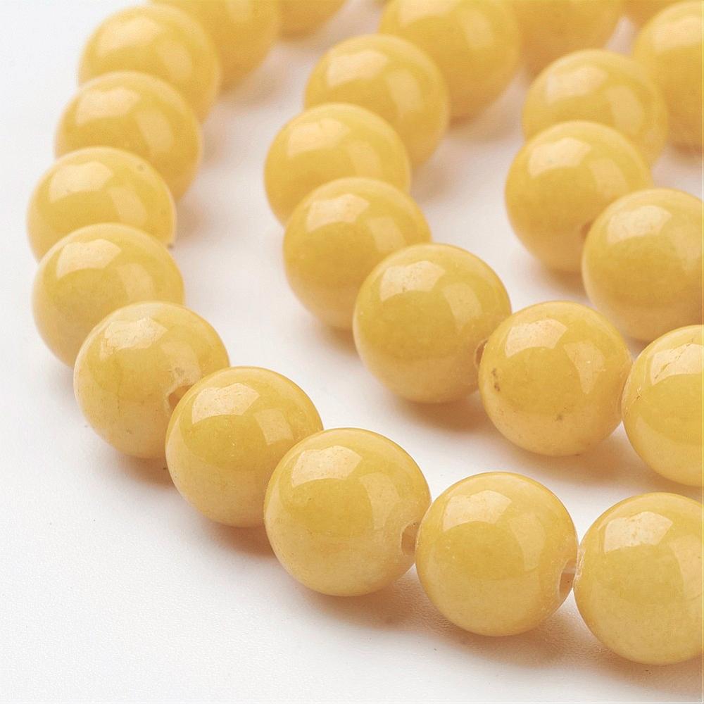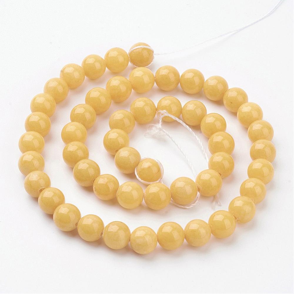 Jadeperler runde. Gule 8 mm. Hel streng.