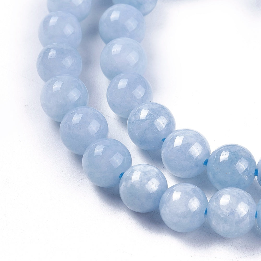 Jadeperler runde. Lyseblå 6 mm. Hel streng.
