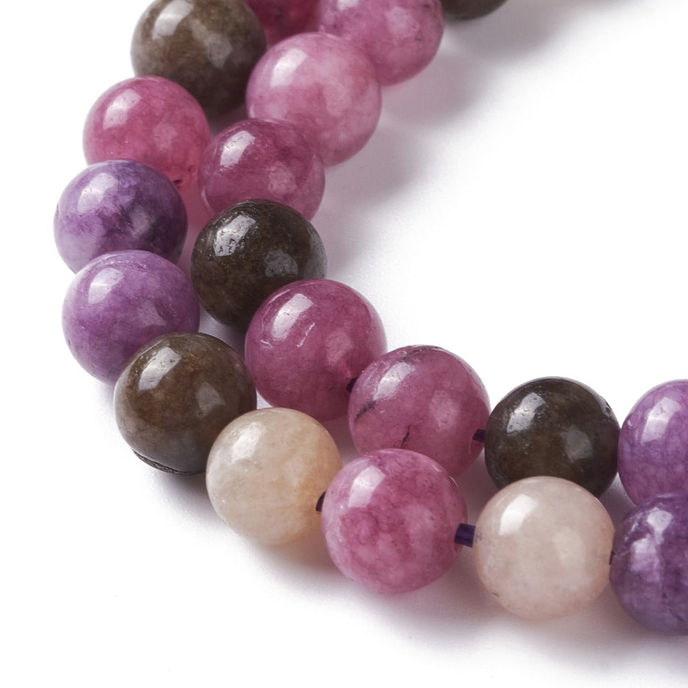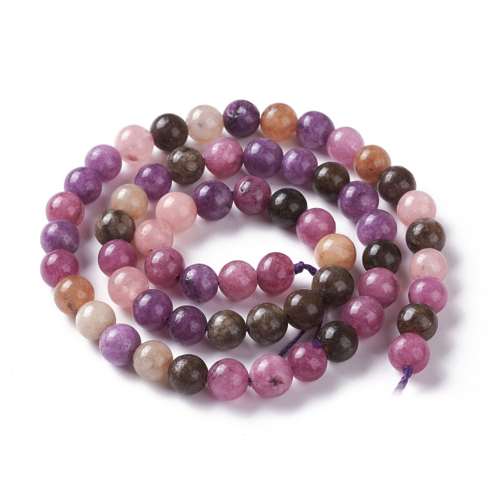 Flotte jadeperler i Tourmalin farver. 6 mm. på en hel streng med ca. 60 perler.