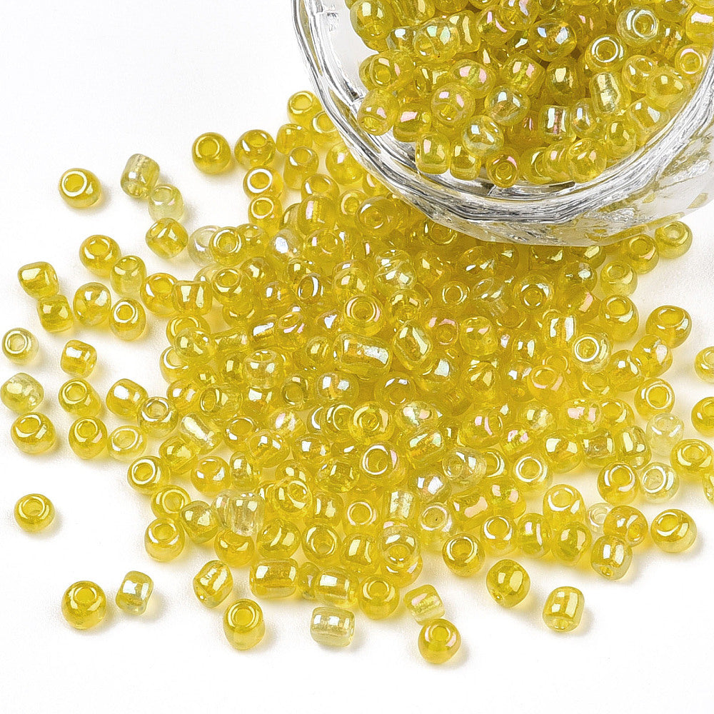 Seed beads gule transparent rainbow. Ca. 3 mm.